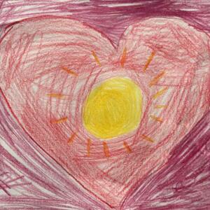 A year one student painted how QiGong makes them feel (right): "I felt that my heart was very warm."
